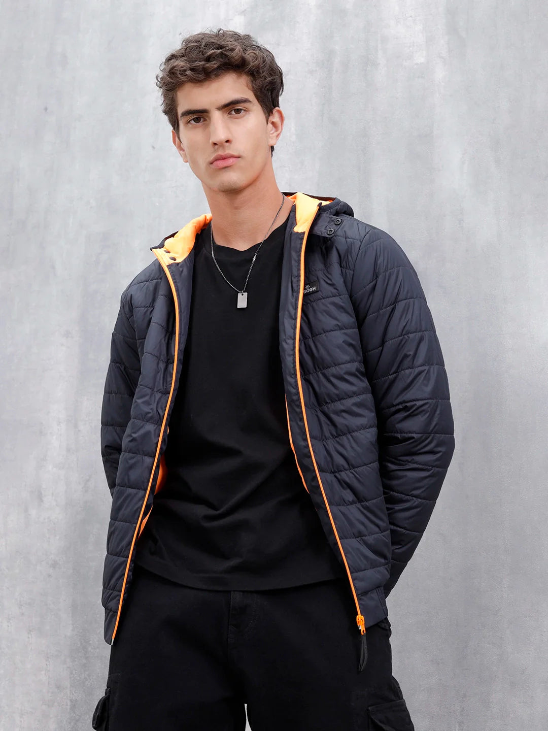 Stay warm and stylish with this black puffer jacket. Regular fit and lightweight padding make it perfect for layering during chilly days. A versatile piece for casual winter wear.
